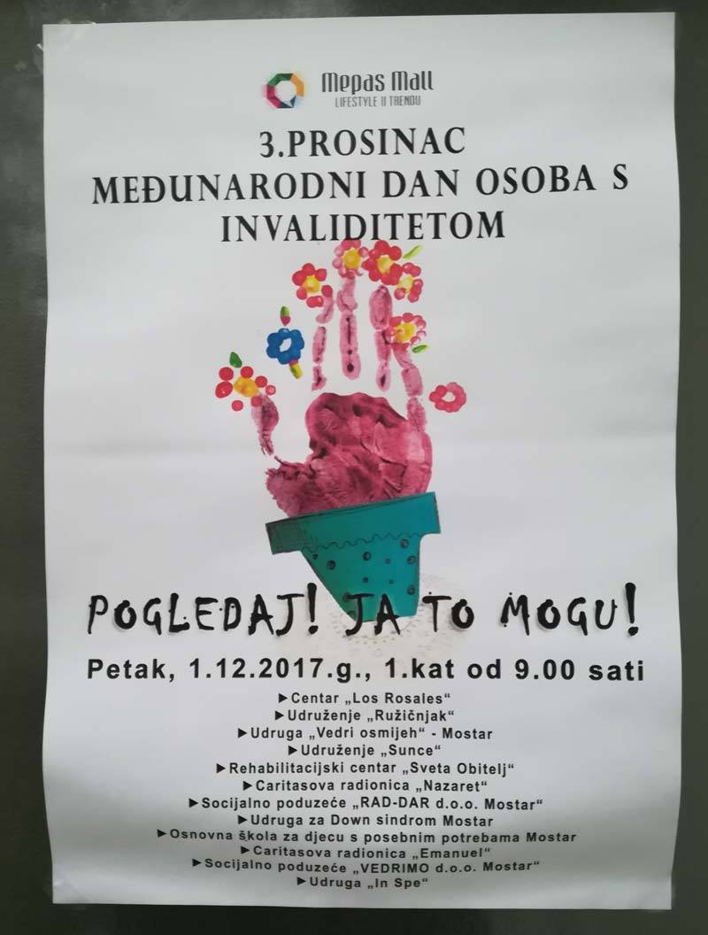 Dana 01.12.2017. u prostoru Mepas Mall-a (Mostar) na prvom katu, održava se prodajna izložba povodom obilježavanja 03.12.2017. Međunarodnog dana osoba sa invaliditetom.