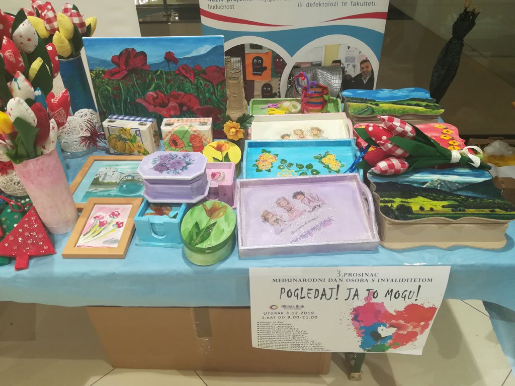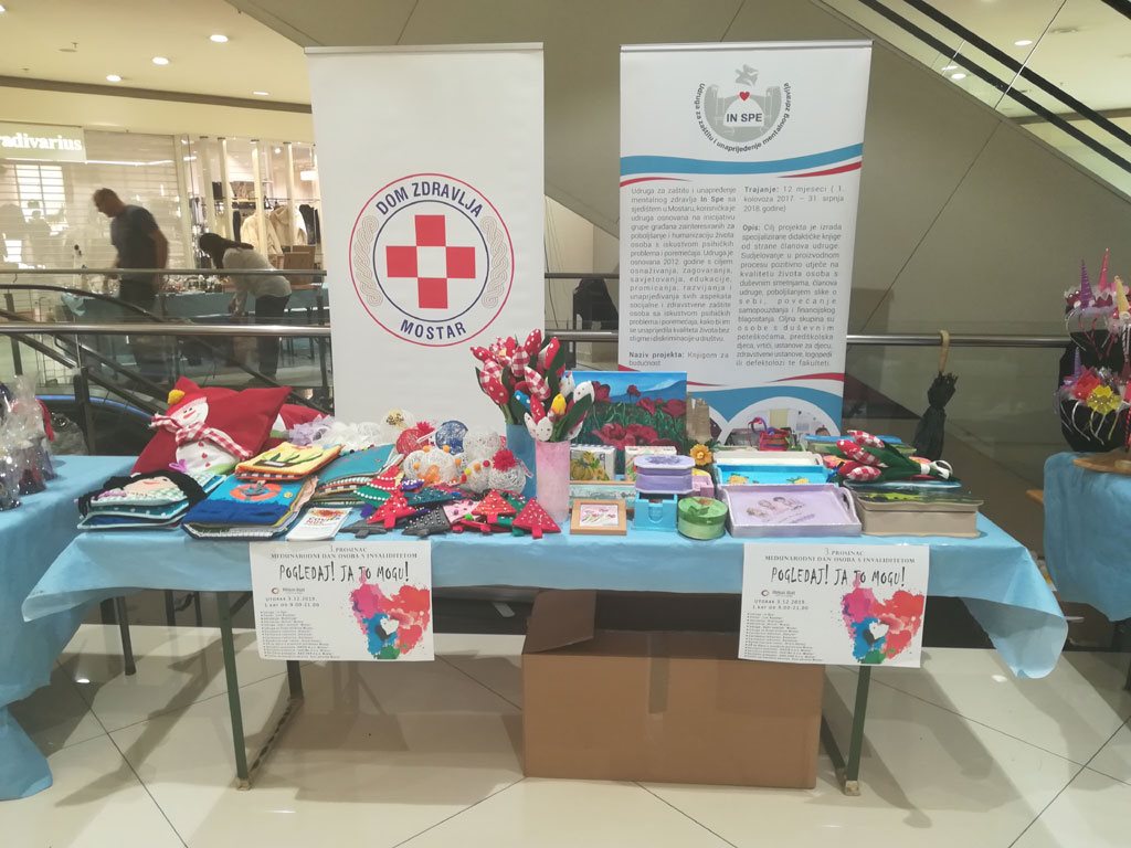 U povodu Međunarodnog dana osoba s invaliditetom, 3.12.2019., udruge i ustanove koje okupljaju i rade s osobama s invaliditetom, od 9:00 do 21:00 sat u Mepas Mall centru u Mostaru, organiziraju prodajnu izložbu radova svojih članova.