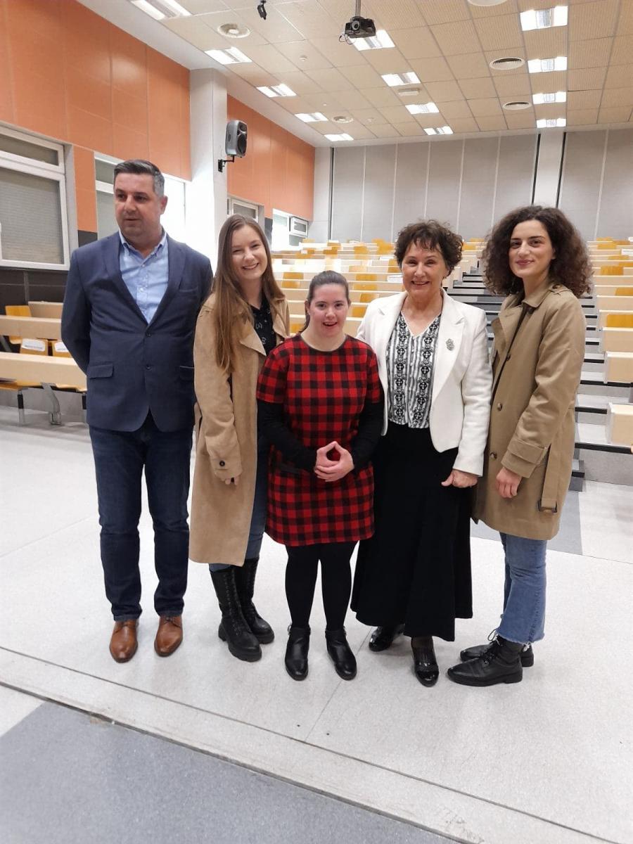 Na današnjem predavanju koje se održalo u amfiteatru Medicinskog fakulteta Sveučilišta u Mostaru na pozornicu su stupili i naša Daria Delić koja je, kao osoba sa sindromom Down, iznijela nazočnima svoju priču kroz temu “Zašto je važno inkluzivno obrazovanje” i Igor Ledić koji je iz perspektive kako roditelja, tako i predsjednika Udruge za Down sindrom Mostar, iznio svoja iskustva i opažanja o važnosti “Integracije djece i mladih sa sindromom Down u svim oblastima društva na ravnopravnoj osnovi s drugima”.