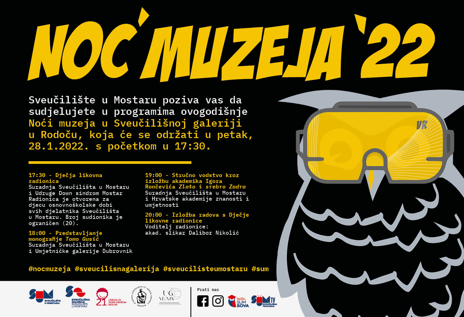 Nastavljamo odličnu suradnju sa Sveučilištem u Mostaru. Noć muzeja u Sveučilišnoj galeriji u Rodoču, petak, 28.01. od 17:30 do 01:00. Dobrodošli!